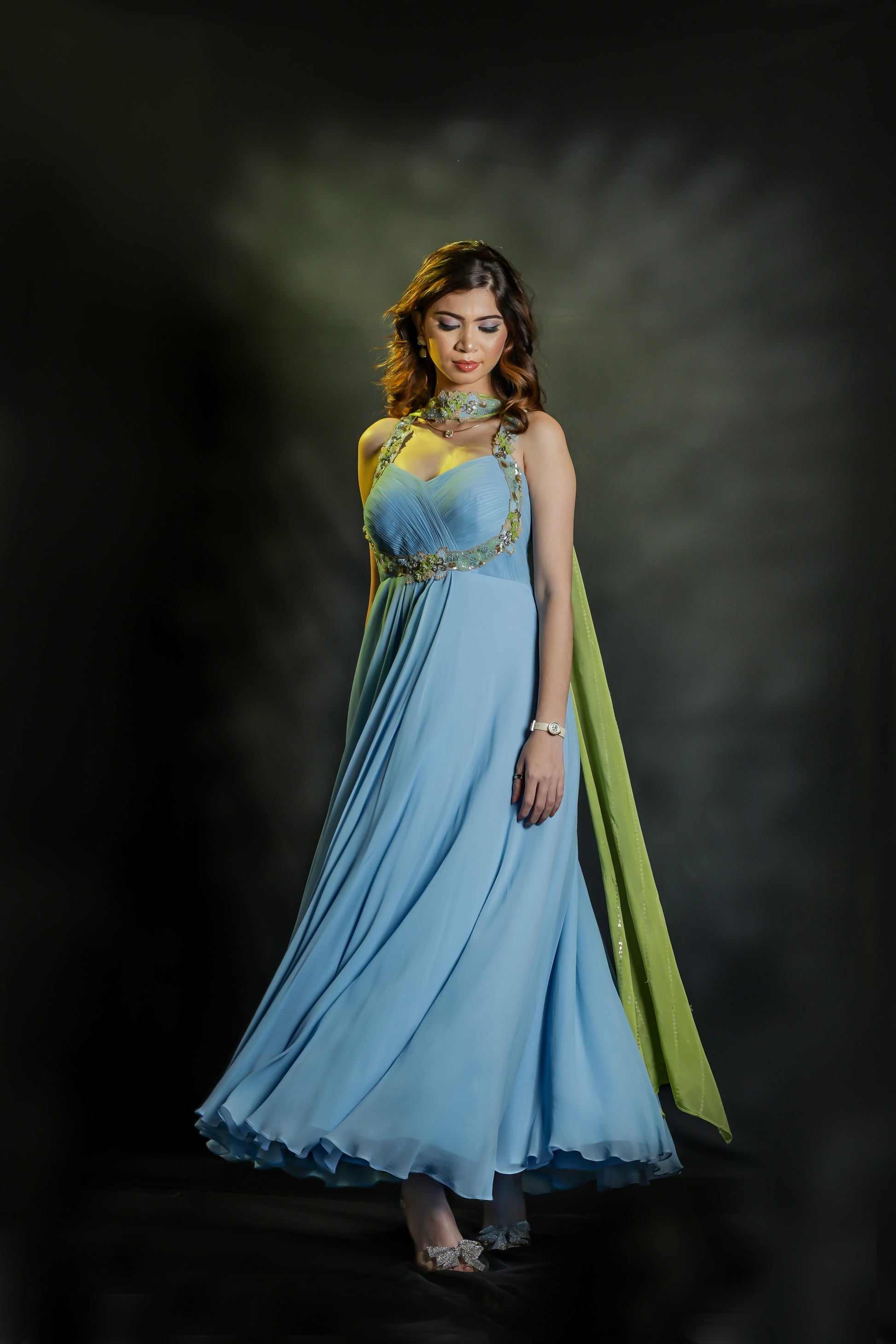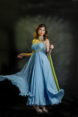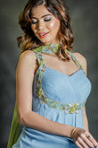 Powder blue embroidered drape dress with handcrafted contrast dupatta